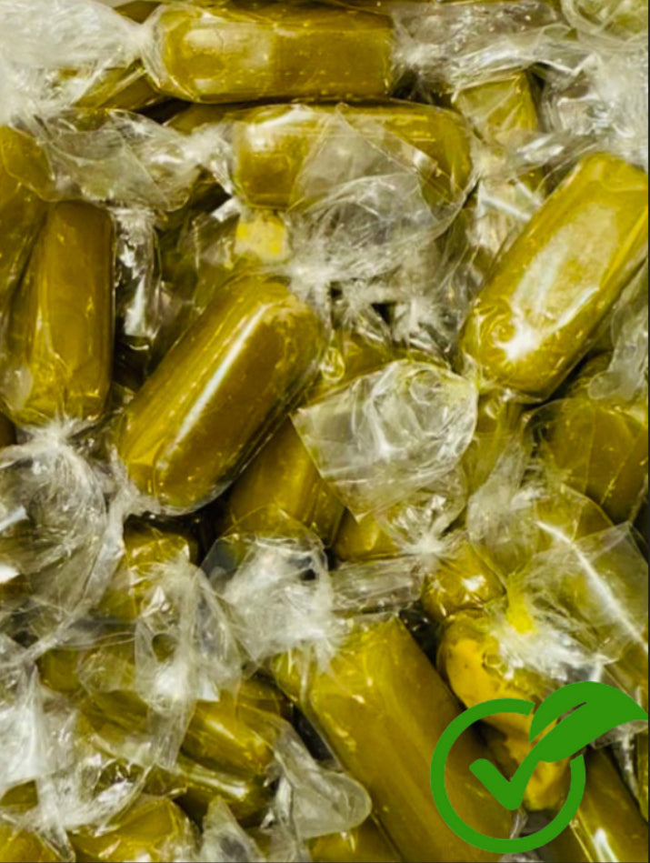 Bonbon dur fourré à la crème de pistache, formé d’une coque de caramel croquante renfermant une crème onctueuse à la pistache. Son goût raffiné ravira les amateurs de confiseries traditionnelles.