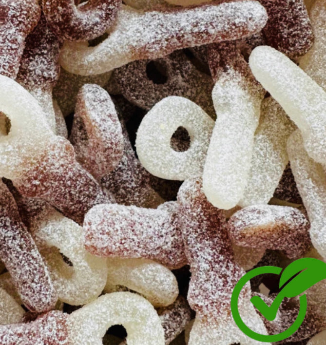 Délicieux bonbons durs en forme de tétine, saveur cola légèrement acidulés.